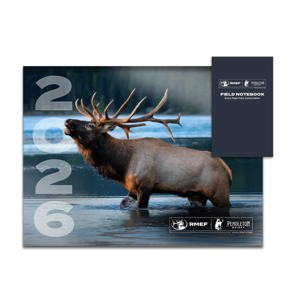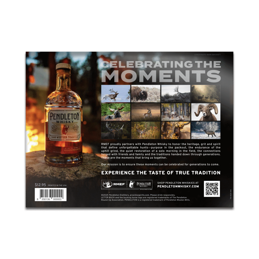 Celebrate the wild spirit of the West with the 2026 RMEF x Pendleton Whisky Calendar — a stunning collection of breathtaking bull elk and North American big game photography paired with signature Pendleton Whisky drink recipes. Each month showcases the beauty of wildlife and craftsmanship, while supporting the Rocky Mountain Elk Foundation’s mission to conserve America’s majestic big game and their habitats. Includes a free RMEF x Pendleton Whisky Field Notebook — perfect for jotting down notes from your own outdoor adventures.