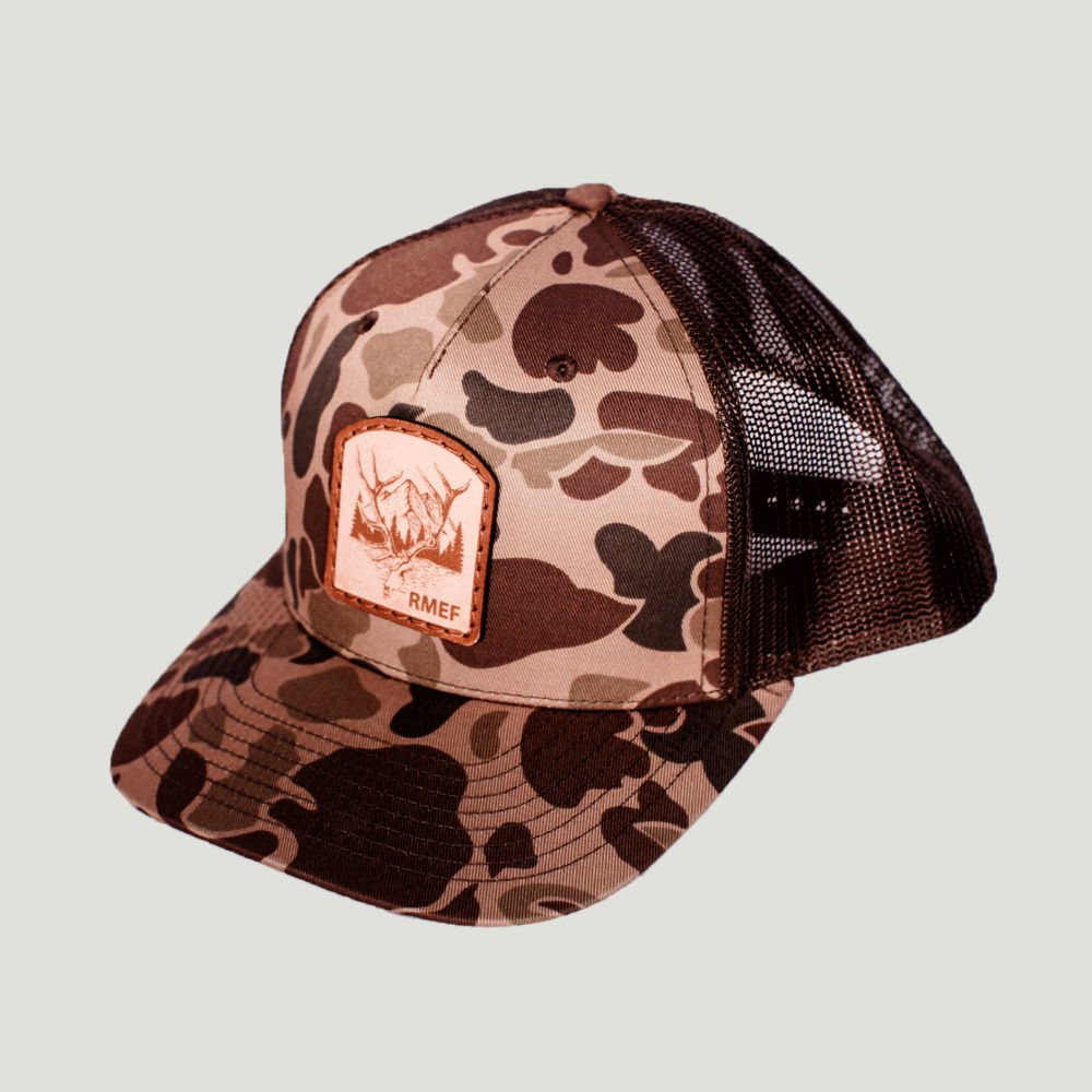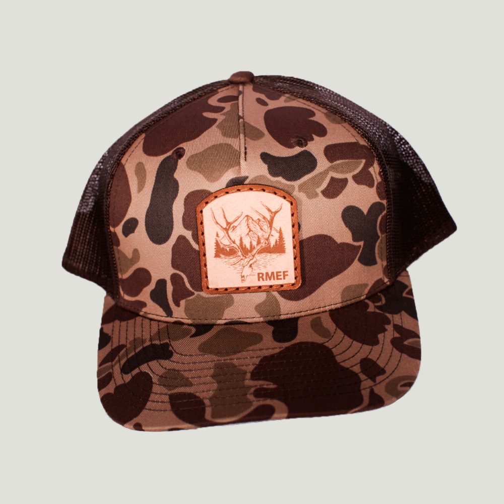 This RMEF 5-Panel Trucker in Duck Bark Camo showcases the Big Six logo on a performance-packed profile, blending rugged camo style with breathable comfort for days in the field or around town.