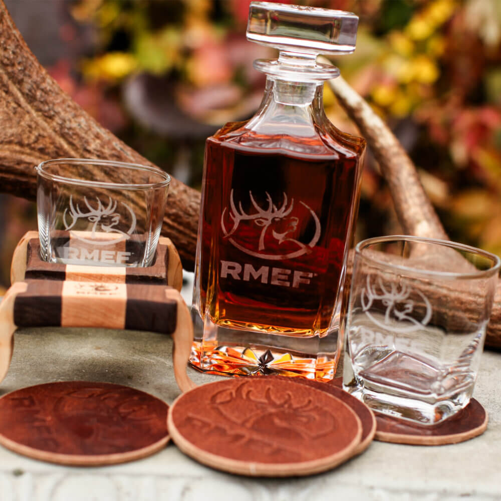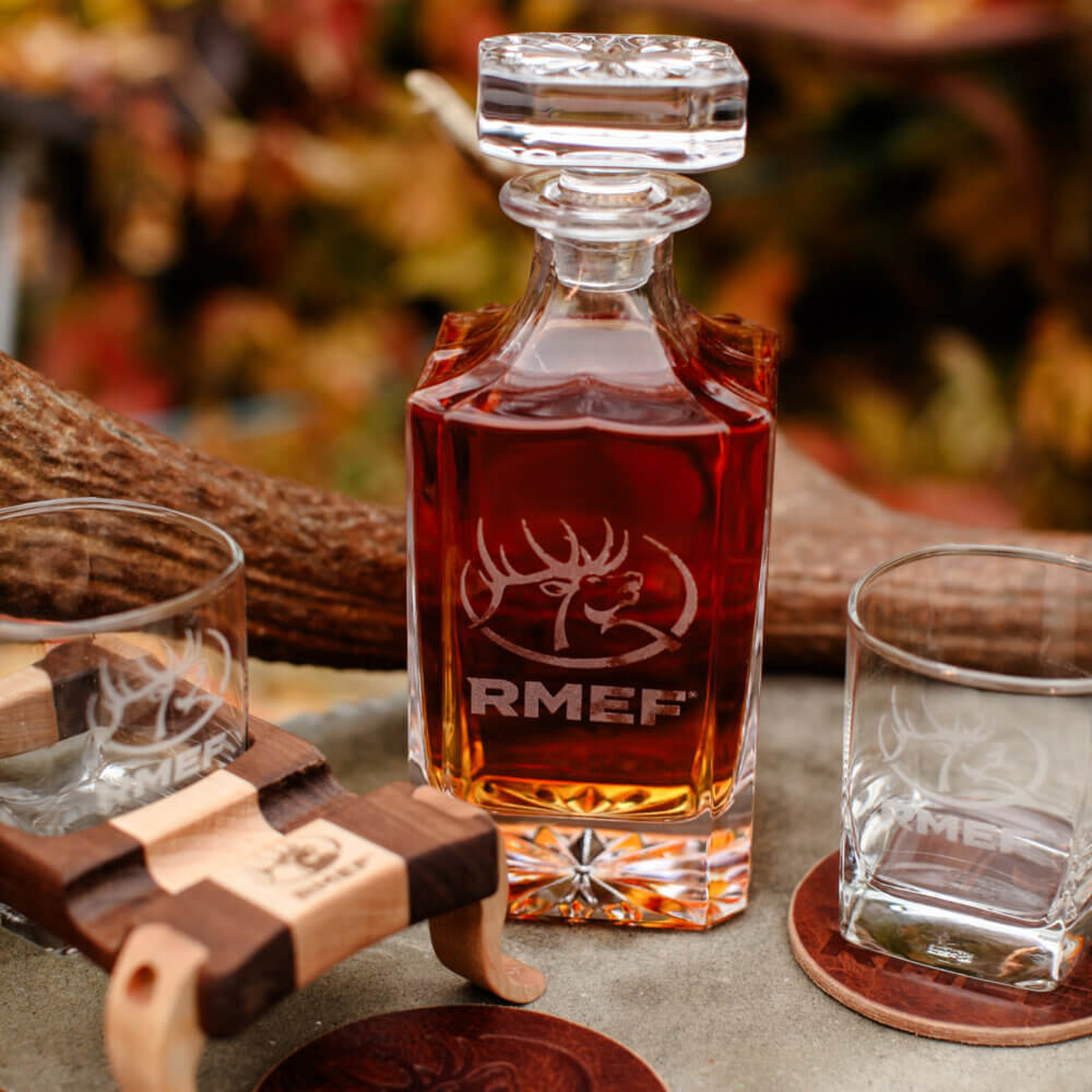 Elevate your home bar with this premium 750ml RMEF decanter, crafted from high-quality glass for exceptional clarity and durability. Featuring your choice of multiple RMEF logo designs, each finely etched for a refined finish, this decanter perfectly blends elegance and outdoor spirit. Ideal for displaying and serving your favorite whiskey, bourbon, or wine—an excellent gift for any Rocky Mountain Elk Foundation supporter or collector.