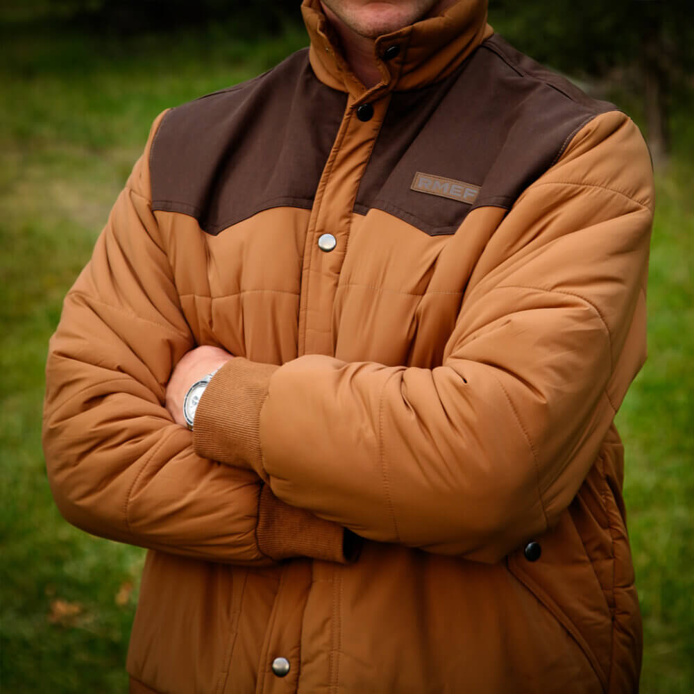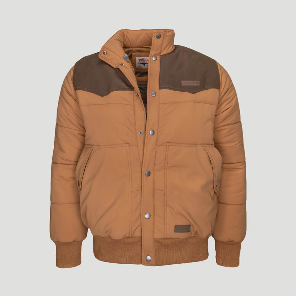 Meet the Cold Snap Puffer—a modern puffer with old-school Western grit. Built like the jackets our dads wore, but with a cleaner fit. Padded warmth you can trust, western yoke detailing across the shoulders, and a wool-blend polar fleece lining that nods to ranch roots. Whether you’re throwing hay at dawn or tailgating under stadium lights, this jacket’s made to handle the cold without looking like you’re headed to Everest.