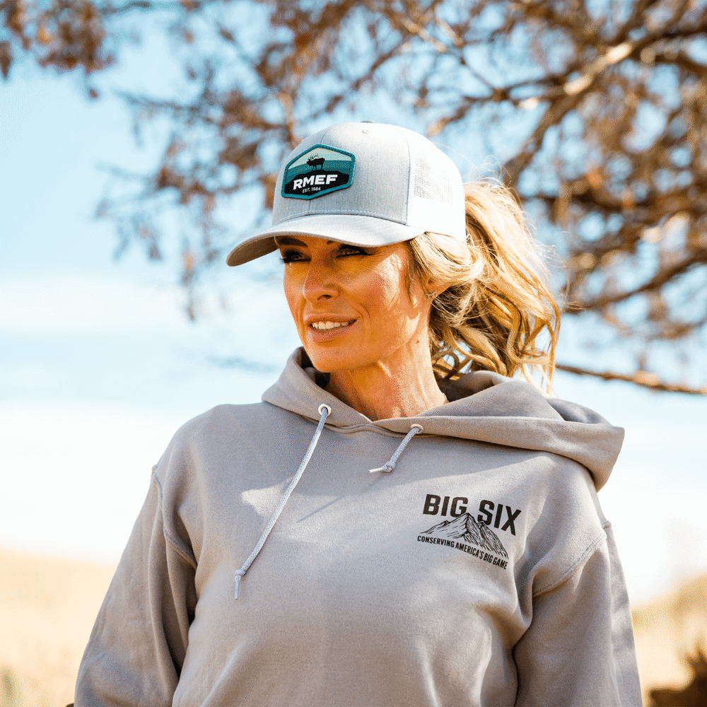 Show your support for wildlife conservation with the Big Six Hoodie. Featuring RMEF’s bold design and “Conserving America’s Big Game” motto, this midweight fleece hoodie delivers warmth, comfort, and a cause worth repping—on the mountain or in town.