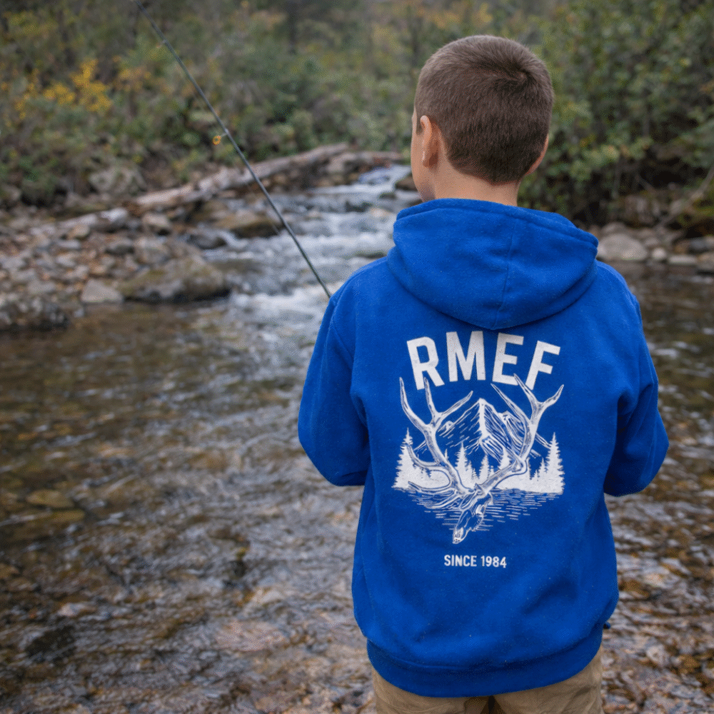 This RMEF youth hooded sweatshirt features the bold Big Six logo, offering warmth, comfort, and style for young outdoor enthusiasts. Perfect for everyday wear or adventures in the wild.